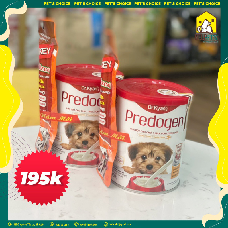 Sữa bột cho chó Predogen lon 400g TẶNG 1 Xúc xích cho cún vị gà và cá ngừ 40g Chicken Sausage LIKKEY giá chỉ